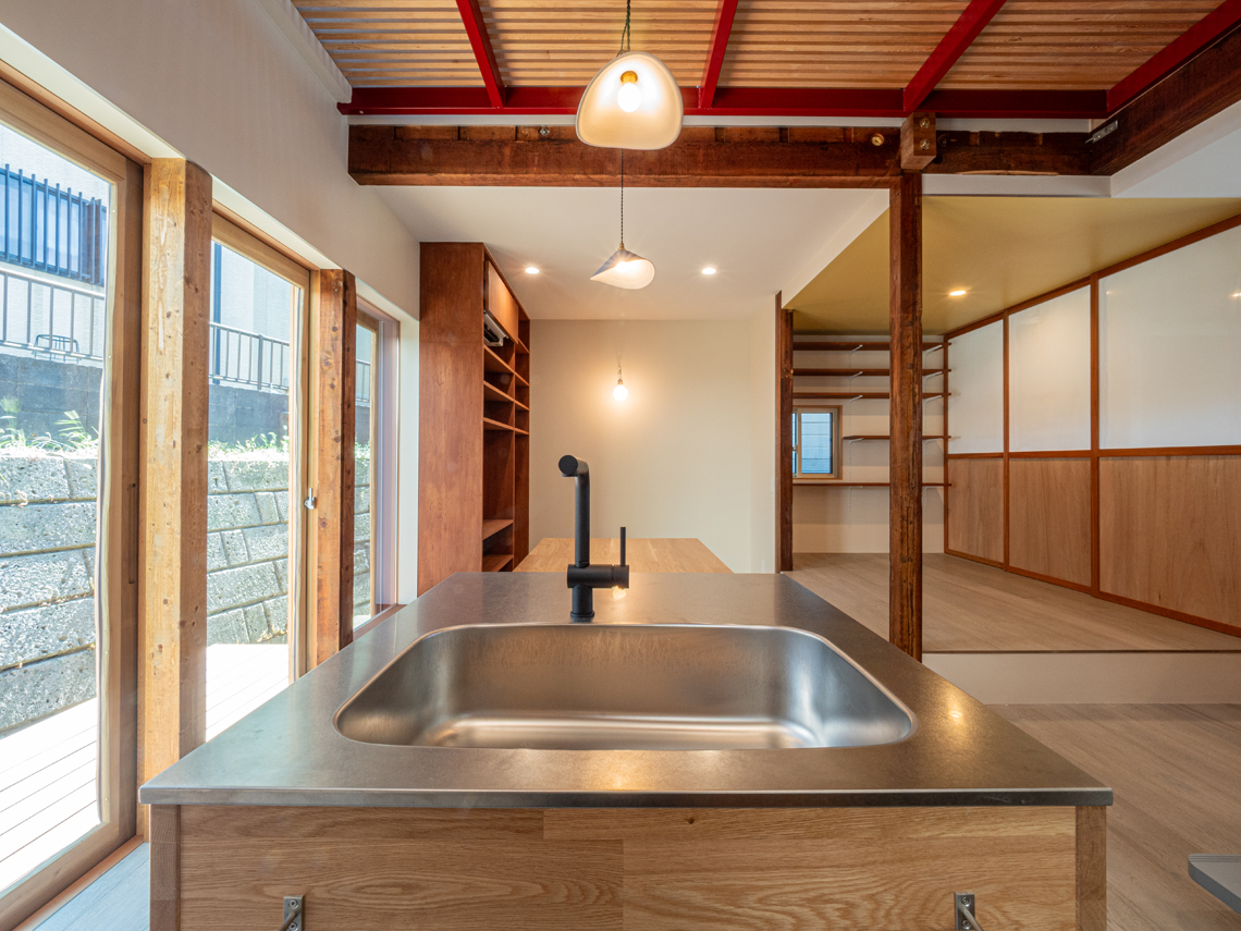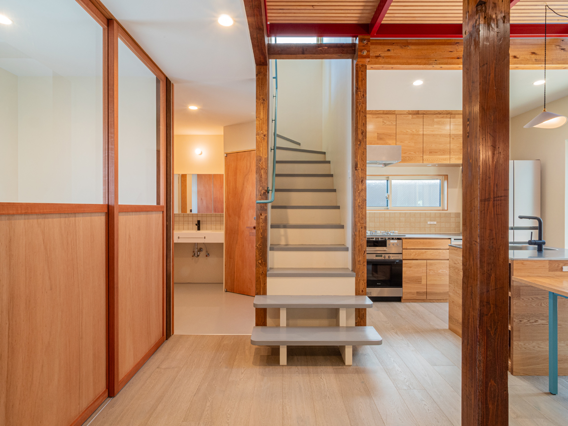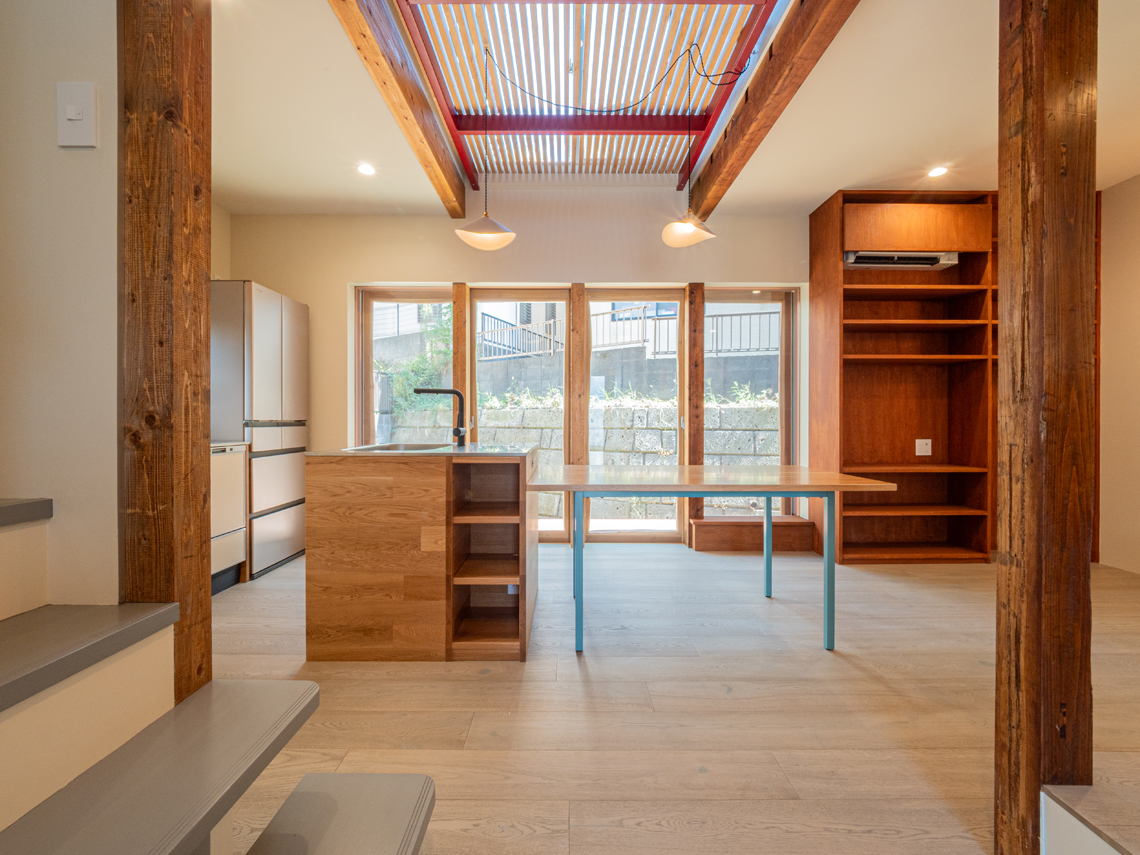 一戸建ての柱や基礎など、既存の構造体を再利用し、全面的な改修を行いました。